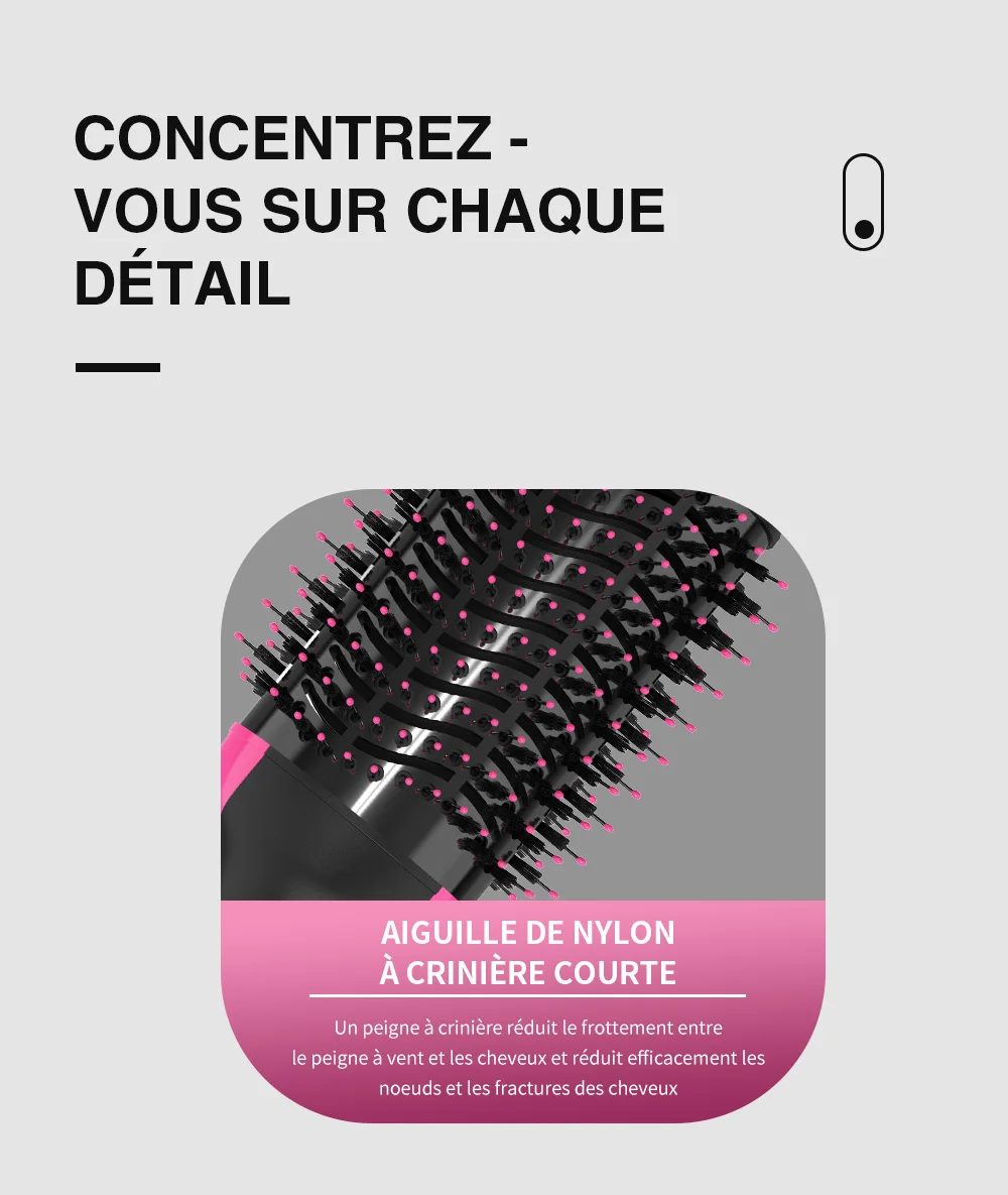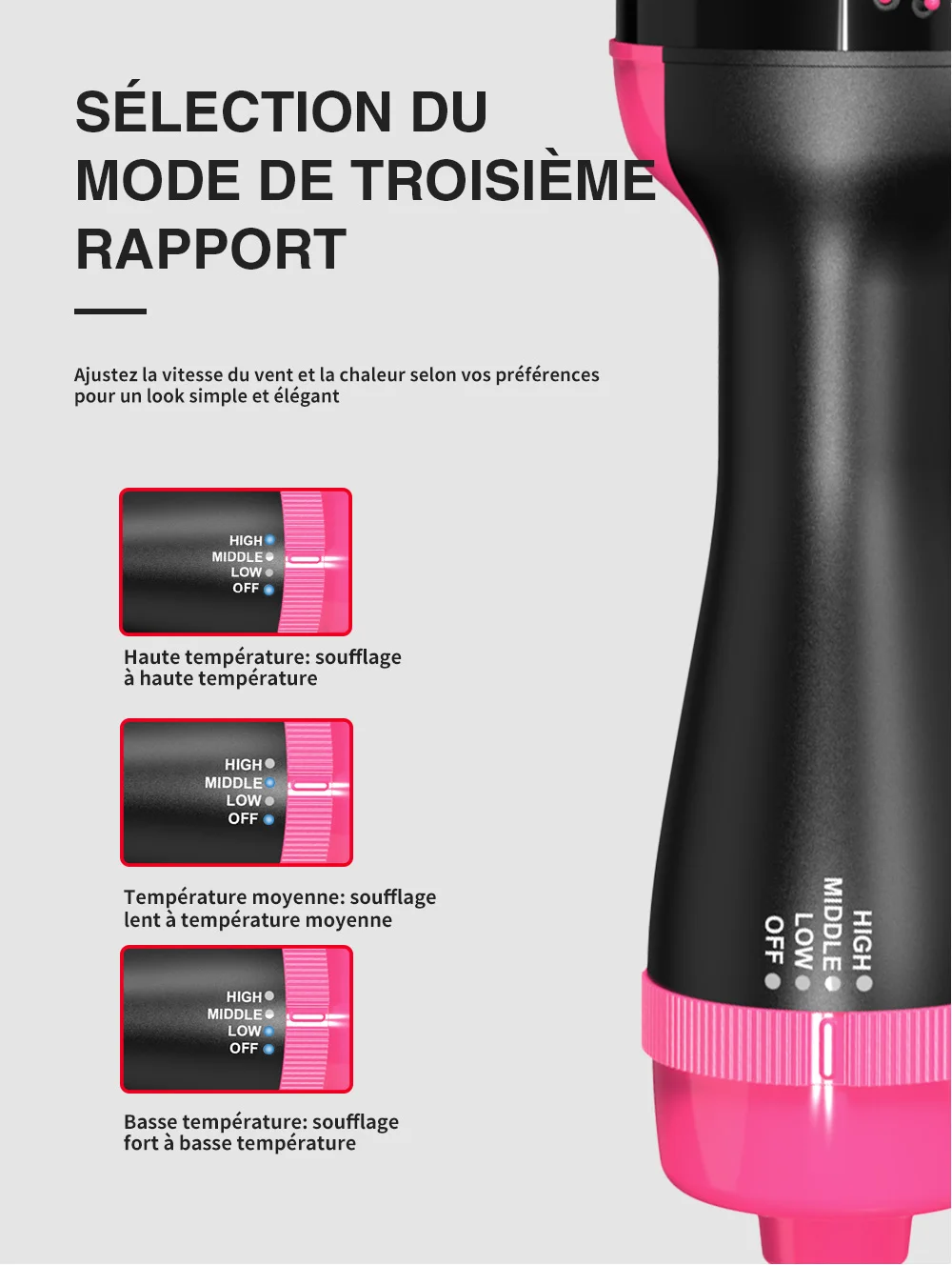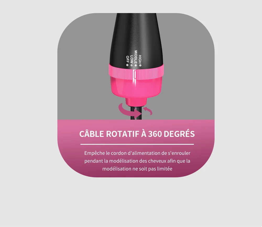 Conception Intelligente: La rotation à 360° du cordon d’alimentation offre une maniabilité inégalée, tandis que le bouton de contrôle de température permet un ajustement précis selon vos préférences de coiffure.